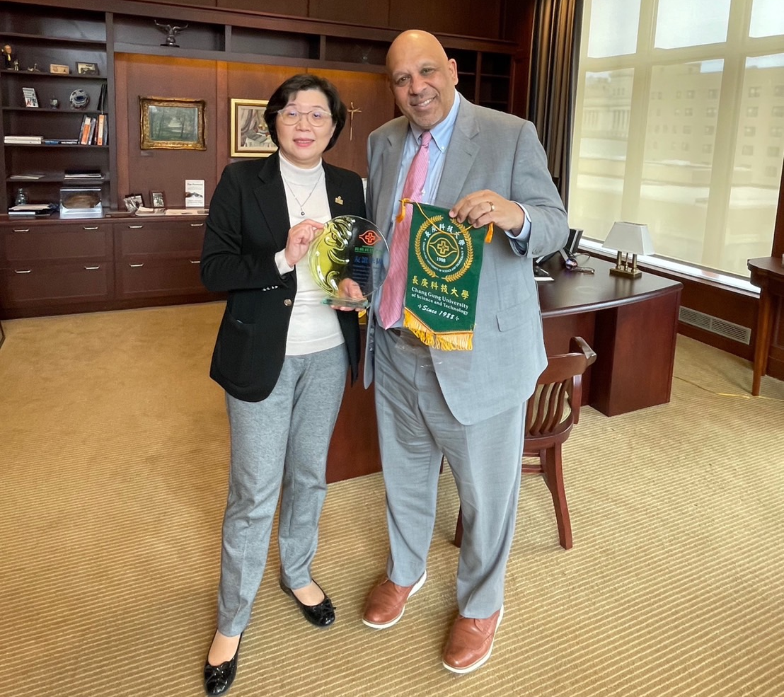 為增進台灣與國際間的學術合作,長庚科技大學校長范君瑜率領護理系數名主管前往美國馬凱特大學護理學院進行參訪,展開一系列的學術交流。馬凱特大學校長Kimo Ah Yun博士親自接待范君瑜校長,並欣喜地表示,長庚科大自2023年10月與馬凱特大學成為姊妹校以來,今次是第一次到美國進行參訪,相信此次的交流,定能促成兩校更緊密的合作。